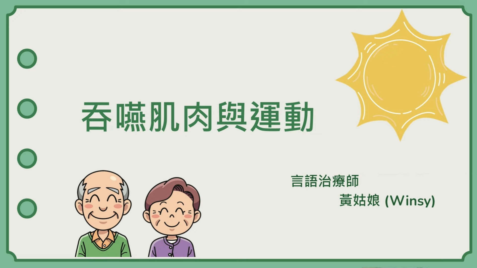 言語治療師將會講解吞嚥四部曲、吞嚥困難特徵及成因,亦會分享相應的口肌及吞嚥的運動練習,有效改善或預防長者吞嚥困難情況,幫助有吞嚥困難的長者在家中進行練習。